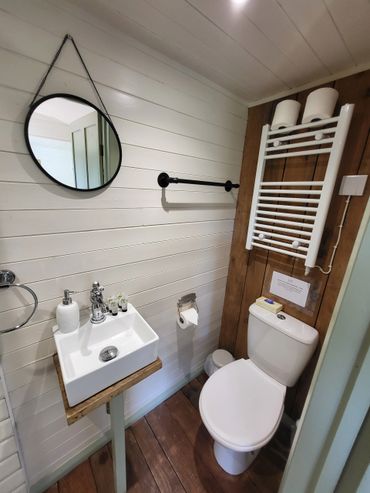 Your private self contained bathroom has fresh hot and cold water including a shower, sink and mains toilet.
