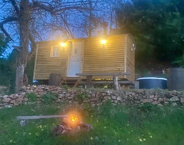 Our huts offer guests the opportunity to stay in a cosy, rustic shepherd hut with your own private electric hot tub, wood burning stove and fully fitted bathroom.