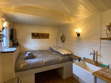 The kitchen is equipped with a toaster, kettle, fridge with a freezer compartment, combination microwave (for oven and grilling as well as microwaving), Single hob, oven and Belfast sink. We also have A TV and wifi for a cosy night in.